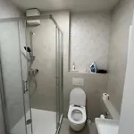 Az apartman fürdőszobája fürdőlepedőkkel felszerelt.